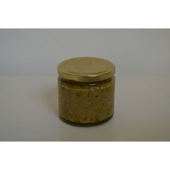 Carciofi coltivati nelle nostre campagne. Raccolti tra marzo e aprile, vengono bolliti in acqua, aceto di vino e sale; successivamente frullati in olio EVO ed insaporiti con spezie. Crema spalmabile, ottima per aperitivi con crostini e tartine; indicata anche come base per panini gourmet con salumi tipici.