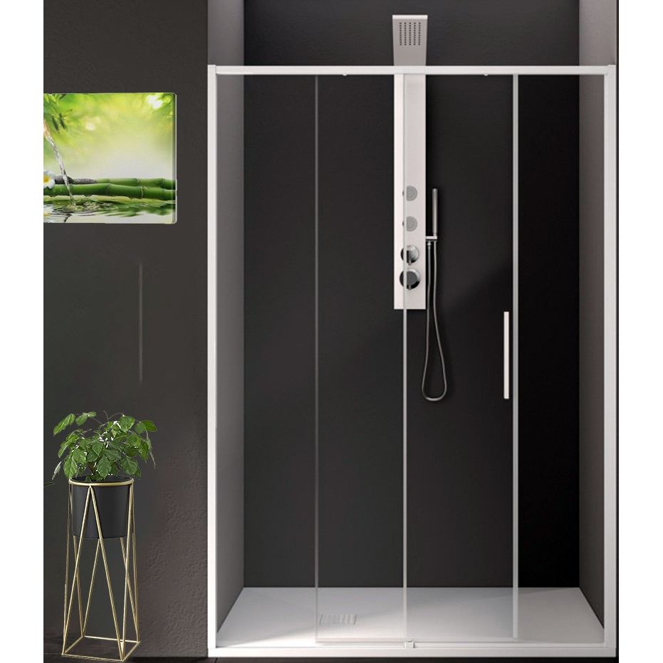 Box Doccia estensibile STYLE a nicchia con due ante, una fissa e una scorrevole. Caratteristiche tecniche del prodotto: Cristallo temperato EN14428:2004 da 6mm; Finitura in cristallo trasparente con profili cromo lucidi, nero satinato o bianco satinato; Chiusura magnetica delle ante; Trattamento anticalcare; Doppia clip di scancio per la pulizia dei cristalli; Altezza 200cm; Estensione 3 cm; Reversibile;