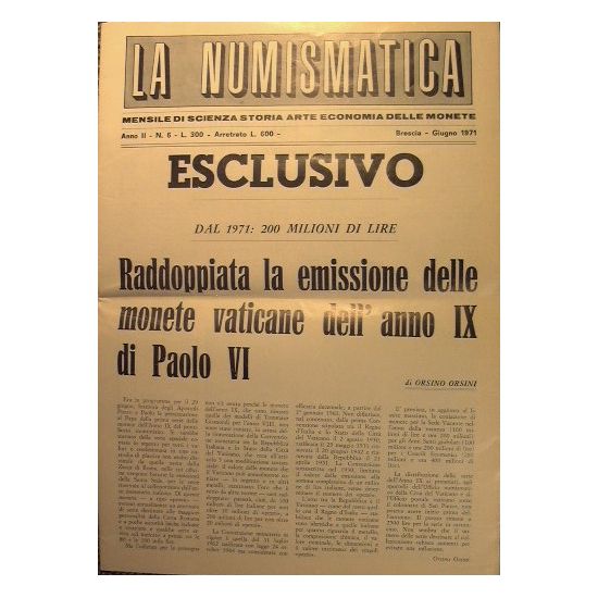 Mensile di scienza, storia, arte, economia delle monete - Anno II n° 6 - in 4° - pp.24 - Senza legatura - Ill. b/n n.t.
