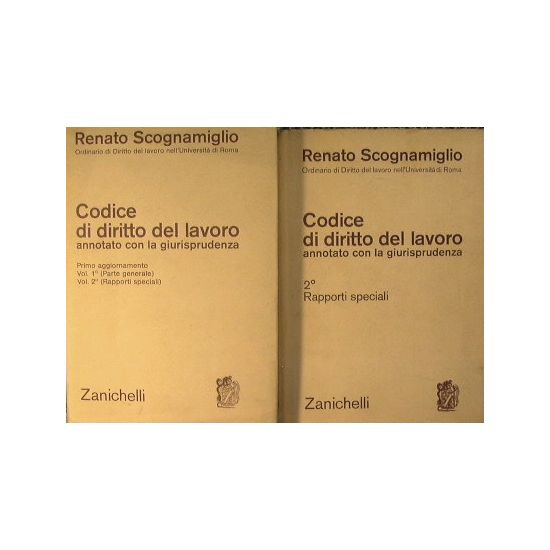 Annotato con la giurisprudenza. Primo aggiornamento - Vol. 1° (Parte generale). Vol. 2° (rapporti speciali). Manca il terzo volume. - in 16° - pp.LIV ;1084 + 311+ 1085 - Tela con sovracopertina - 2 volumi - Leggeri segni d'uso alla sovracopertina. Ottimo nel resro