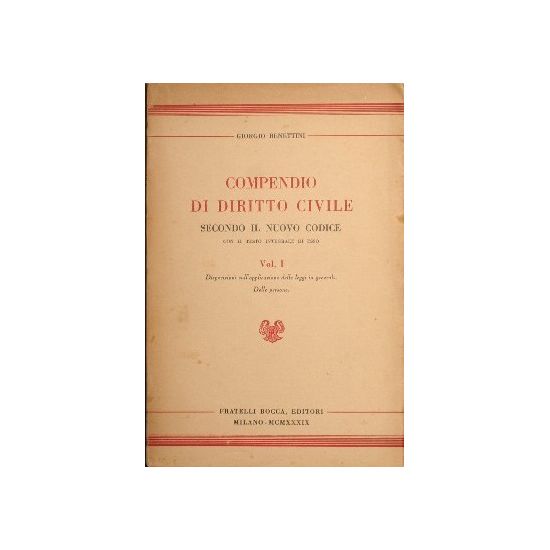 Con il testo integrale di esso - Volume I: Disposizioni sull'applicazione delle leggi in generale. Delle persone - in 8° - pp.207 - Brossura editoriale - Pagine brunite, per il resto ottimo esemplare