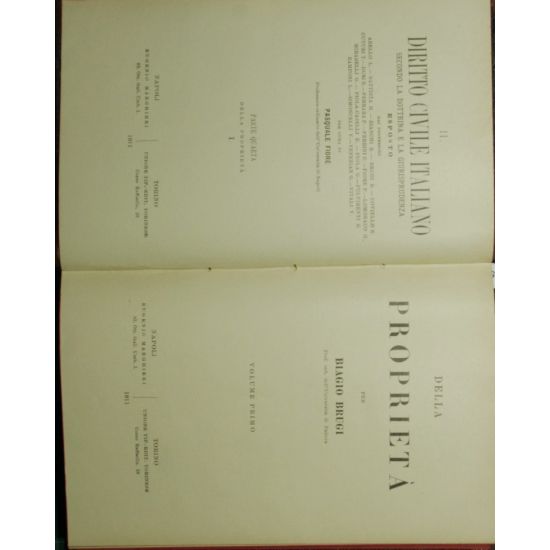 Collana Il diritto civile italiano secondo la dottrina e la giurisprudenza. Parte quarta. Della proprietà. N. 1 - in 8° - pp.X + 474 - Mezza pelle con titolo e fregi in oro al dorso nervato - Tagli rossi