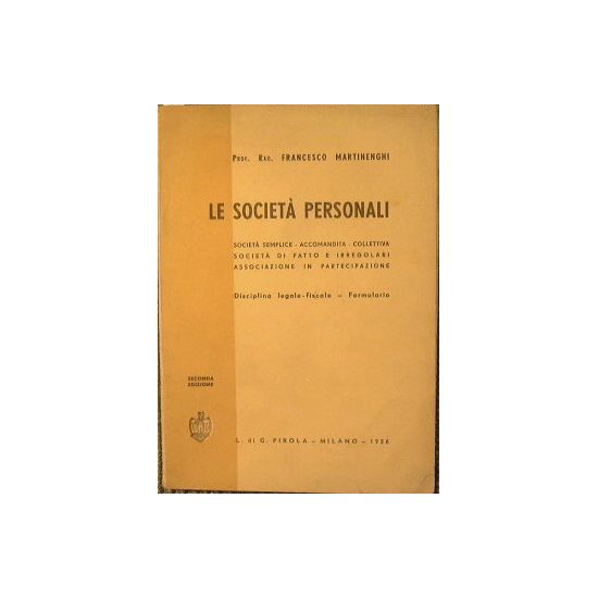 Società Semplice - Accomandita - Collettiva - Società di fatto e irregolari - Associazioni in partecipazione. Disciplina legale-fiscale - Formulario - in 8° - pp.171 - Brossura editoriale - Primo fascicolo allentato