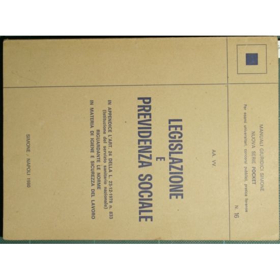 Istituzioni di Previdenza Sociale - Collana Manuali giuridici Simone. Nuova serie pocket. N. 16 - in 8° - pp.187 + V - Brossura editoriale