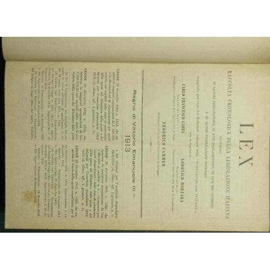 Con richiami di lavori preparatorii, di atti parlamentari, di atti del governo e di altre pubblicazioni ufficiali - Compilata per cura dei redattori ordinari della 'Giurisprudenza Italiana' sotto la direzione di Carlo Francesco Gabba, Lodovico Mortara e Federico Cammeo - in 8° - pp.1842 - Tela con titolo in oro al dorso