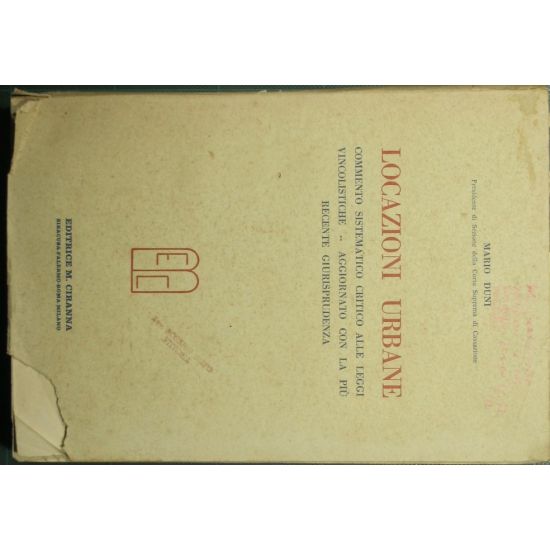 Commento sistematico critico alle leggi vincolistiche con la più recente giurisprudenza aggiornata a tutto il 31-12-1957 - Collana Aretusa. Collana di cultura varia. N. 15 - in 8° - pp.602 - Brossura editoriale - Alcuni fogli chiusi - Strappetti con e senza mancanze alla brossura, rare sottolineature a matita colorata in poche pagine