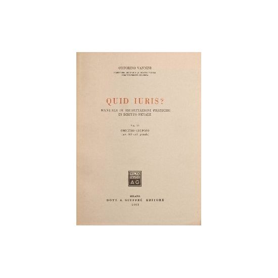 Manuale di esercitazioni pratiche in diritto penale - Volume VI: Omicidio colposo (art. 589 cod. pen.) - in 8° - pp.99 - Brossura editoriale - Fogli intonsi