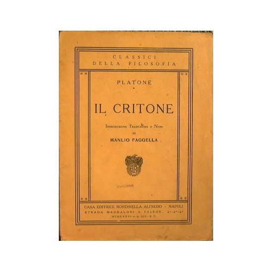 Classici della filosofia - Introduzione, traduzione e note di Manlio Faggella - in 8° - pp.29 - Brossura editoriale - Lievi note d'appartenenza
