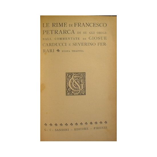 di su gli originali, commentate da Giosuè Carducci e Severino Ferrari - in 8° - pp.XLV + 548 - Mezza tela coeva, piatti in cartone rigido marmorizzato - Fioriture ai tagli, lievi abrasioni al dorso