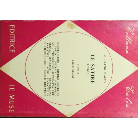 A cura di Carlo Stagni - Collana Talia - in 8° - pp.213 - Brossura editoriale - Fioriture alla brossura e ai tagli - Questionario. Giudizi notevoli. Testo. Metrica. Costruzione. Traduzione alternata letterale italiana. Esposizione analitica. Note sintattiche e filologiche. Indice dei verbi