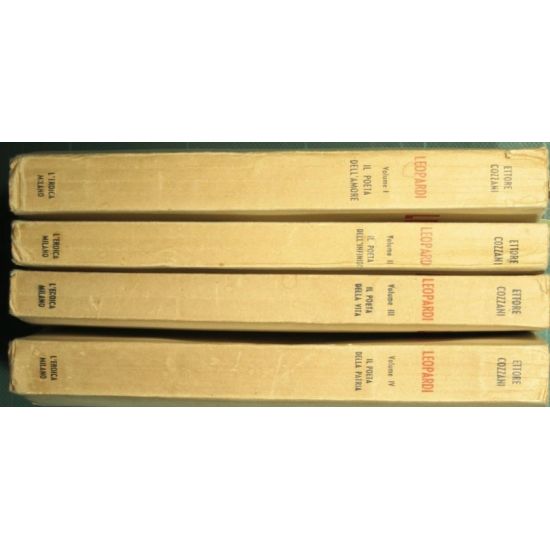 Vol. I: Il poeta dell'amore; Vol. II: Il poeta dell'infinito; Vol. III: Il poeta della vita; Vol. IV: Il poeta della patria - Terza edizione. Sotto gli auspici del Centro Nazionale di studi leopardiani in Recanati - in 16° - pp.226; 165; 169; 165 - Brossura editoriale - Quattro volumi - Molti fogli ancora chiusi