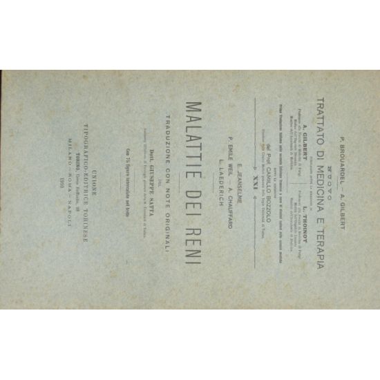 Traduzione con note originali del Dott. Giuseppe Satta - Collana Nuovo trattato di medicina e terapia. Pubblicato sotto la direzione di A. Gilbert e L. Thoinot. N. 21 - in 8° - pp.449 - Brossura editoriale - Immagini in b/n nel testo - Volume quasi interamente intonso - Primo fascicolo lento