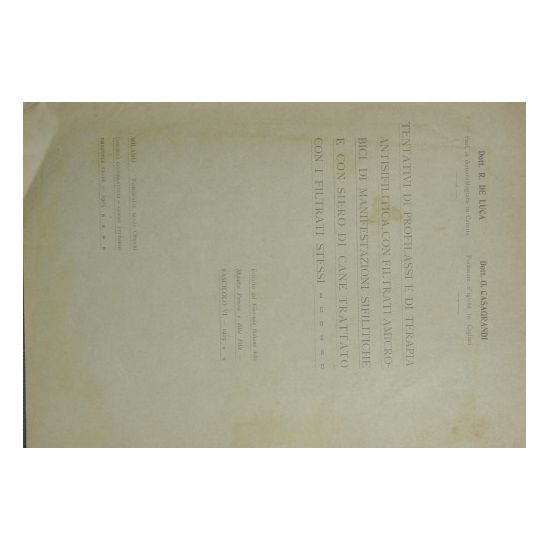 Tentativi di profilassi e di terapia antisifilitica, con filtrati amicrobici di manifestazioni sifilitiche e con siero di cane trattato con i filtrati stessi