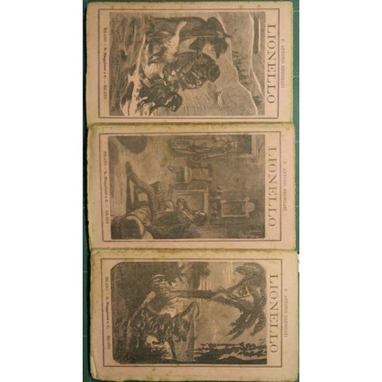 in 16° - pp.127 pp. a volume - Brossura editoriale illustrata - Tre volumi - Illustrazioni in b/n in antiporta - Piccole mancanze al dorso del I volume - Volumetti contenuti in legatura sciolta in mezza pelle muta