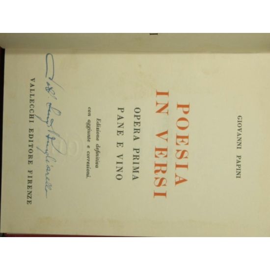 Opera prima. Pane e vino - Edizione definitiva con aggiunte e correzioni - Collana Opere di Giovanni Papini. N. 18 - in 16° - pp.262 - Tela con titolo in oro al dorso - Firma d'appartenenza a inchiostro al frontespizio