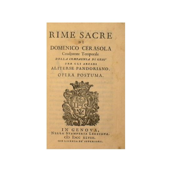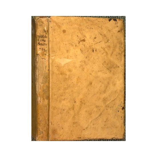 in 16° - pp.8 cc.nn. + 184 + 7 cc.nn. - Pergamena - Marca xilografica al front. e al colophon, una testatina - Opera postuma - Mancanza al dorso ed al margine inf.del piatto sup., ex libris cancellato con inchiostro alla prima bianca. Rare ingialliture. Segno a penna al colophon
