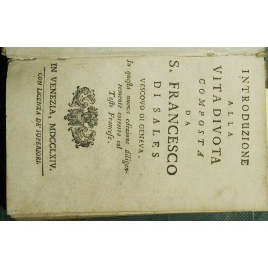 Composta da S. Francesco di Sales vescovo di Geneva - In questa nuova edizione diligentemente corretta col testo francese - in 16° - pp.396 - Pergamena - Testatina, capilettera - Mancanza al dorso