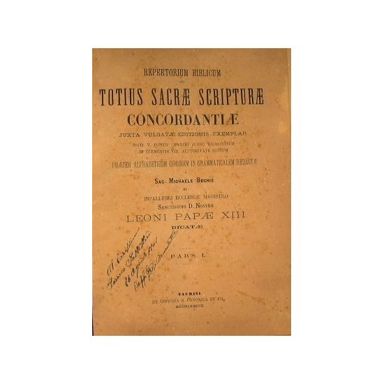 Repertorium biblicum seu totius Sacrae Scripturae concordantiae juxta vulgatae editionis exemplar ... / praeter alphabeticum ordinem in grammaticalem redactae a Sac. Michaele Bechis …