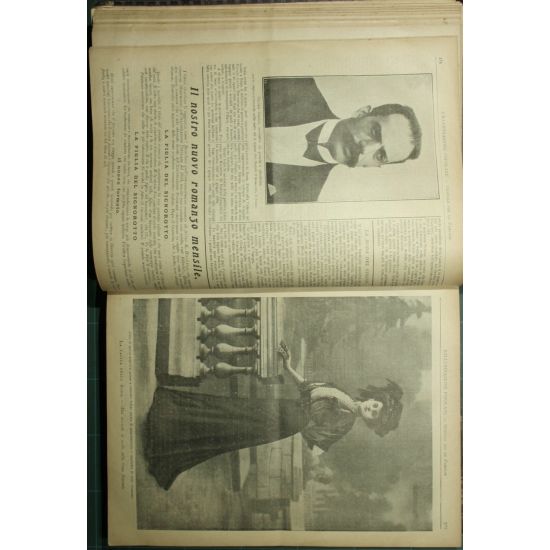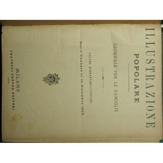 Giornale per le famiglie - Dal 1° gennajo al 31 dicembre 1907 - Collana Illustrazione popolare. Anno 38° - Vol. XLIV - Anno 1907 - in 4° - pp.VI + 832 - Mezza tela dorso con titolo in oro - Cinquantadue fascicoli in un volume - Illustrazioni in b/n nel testo e fuori testo - Testo su più colonne - Strappo senza mancanze al dorso e alle pp. 731-731