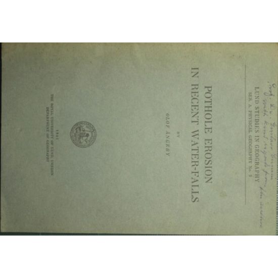 Collana Lund studies in geography. Ser. A. Physical geography no. 2 - in 8° - pp.34 - Brossura editoriale - Illustrazioni in b/n nel testo e fuori testo - Dedica dell'Autore alla brossura