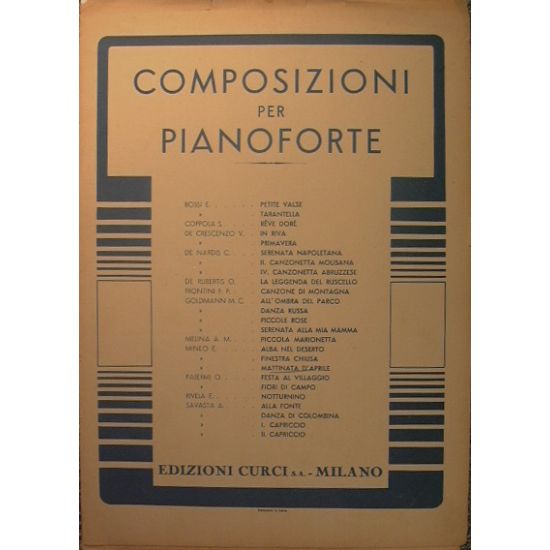 Impressione per pianoforte. - Collana Composizioni per pianoforte - in 4° - pp.5 - Brossura editoriale - Strappetto al dorso e ai margini. Leggermente ingiallito - N.P. 3749