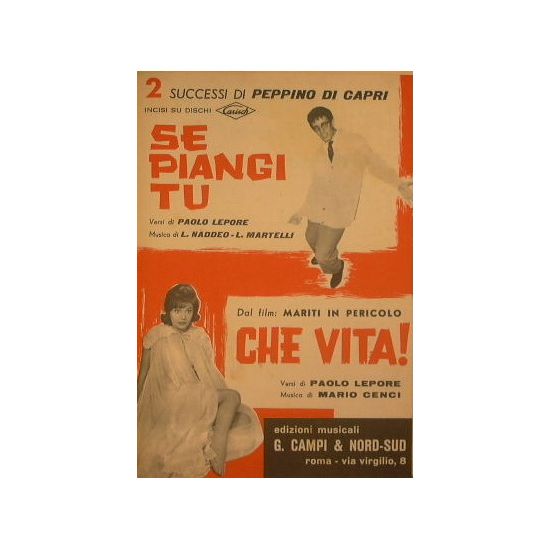 2 Successi di Peppino di Capri - Autori: Paolo Lepore, Naddeo L., Martelli L. e Cenci Mario - in 8° - pp.11 - Brossura editoriale illustrata - Partitura per Pianoforte, Strumenti in Do e Strumenti in Sib