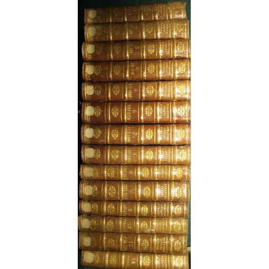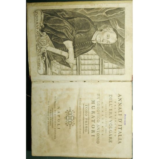 Dal principio dell'era volgare sino all'anno 1750 - in 8° - pp.8 + 570; 586; 560; 584; 520; 592; 528; 474; 408; 518; 389; 422; 19 + 128 + 320; 452 - Mezza pelle con titolo e fregi in oro al dorso - Quattordici volumi - Ritratto dell'Autore in antiporta al I vol. - Piatti rivestiti in pergamena con impressioni - Margine inferiore del frontespizio mancante (tranne al I vol.), lievi fioriture in alcune pp. - Vol. XIII: Annali d'Italia dall'anno di Cristo 1750 fino all'anno 1770 per servire di continuazione a quei del proposto Lodovico Antonio Muratori dati per la prima volta in luce da un Accademico apatista e fiorentino; Vita del proposto Lodovico Antonio Muratori già bibliotecario del Serenissimo signor Duca di Modena descritta dal proposto Gian-Francesco Soli Muratori suo nipote, con la giunta in questa edizione napoletana di alcune lettere scritte dallo stesso proposto Lodovico Antonio Muratori a diversi letterati napoletani; Ultimo vol.: Indice generale delle cose notabili contenute ne' XII tomi degli Annali d'Italia