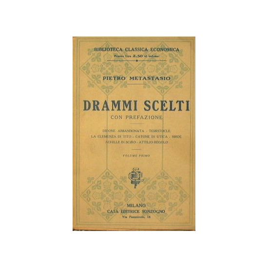 Con prefazione - Biblioteca Classca Economica -Vol primo - in 16° - pp.358 - Brossura editoriale - Qualche sottolineatura a matita - Contiene: Didone abbandonata - Siroe - Catone in Utica - La clemenza di Tito - Achille in sciro - Temistocle - Attilio Regolo