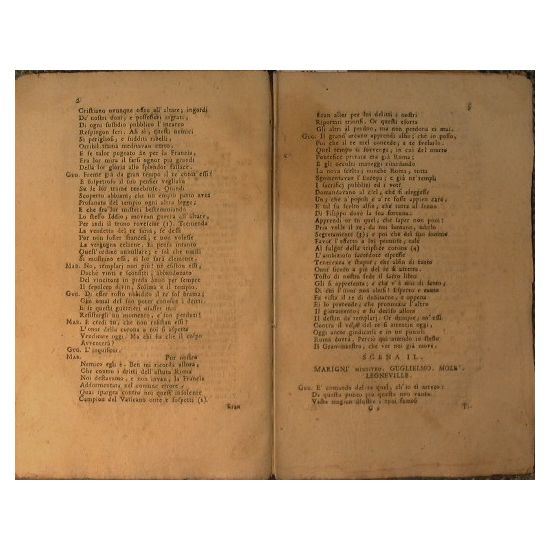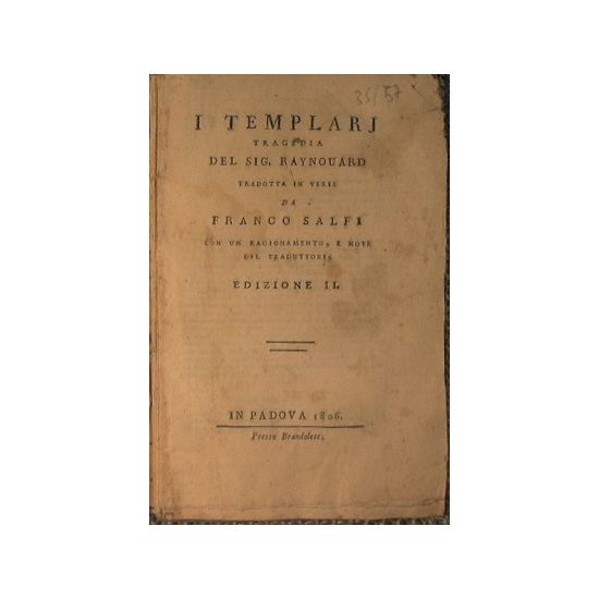 Tragedia del Sig. Raynouard tradotta in versi da Francesco Salfi con un ragionamento, e note del traduttore - In 8° - pp.XXX + 56 - Brossura muta - Edizione seconda - Brossura staccata dal resto del volumetto, fori di tarli alle ultime pagine. Alone d'umido al piatto superiore