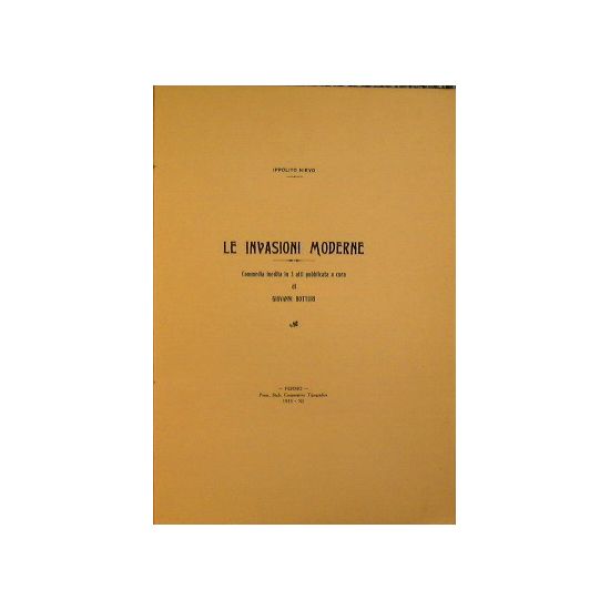 Commedia in tre atti - Pubblicata a cura di Giovanni Botturi - in 8° - pp.123 - Brossura editoriale con sovracoperta in pergamena leggera - Dedica autografa di Boturi alla seconda bianca - Edizione stampata in soli 50 esemplari