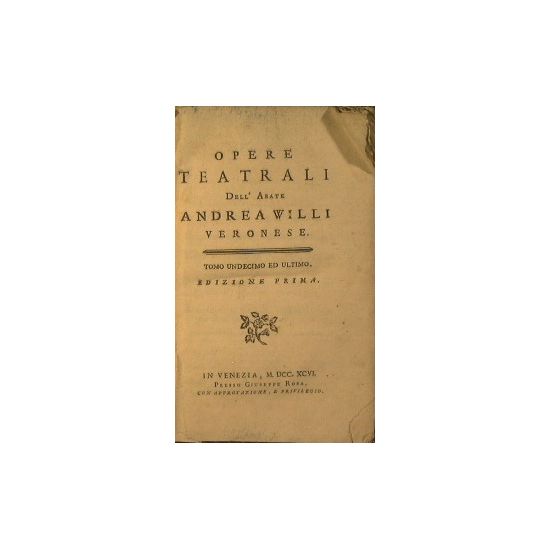 Edizione prima - Tomo undecimo ed ultimo che contiene: Roberto - Il selvaggio - Alessandro il grande - in 8° - pp.pp 1b + 68 + 84 + 63 + 1b - Senza legatura - Conserva le sguardie - Fioriture sparse. Mancanza dei piatti e del dorso. False pieghe