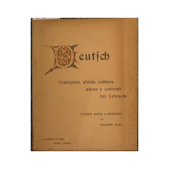 Tradizioni, storia, cultura, paese e costumi dei tedeschi. Letture scelte e annotate... Parte storica. - in 8° - pp.XXII, 372 - Brossura editoriale - con 84 ill. in b/n e una carta geogr. a col.ripiegata - Piccola mancanza alla parte inf.del dorso e al piatto inferiore. Pagine igiallite, per il resto in buono stato - Rara e interessante antologia scolastica ottocentesca per servire come libro di testo per lo studio della lingua e della letteratura tedesca nelle scuole secondarie e negl'istituti superiori. Vol. interam. in tedesco.