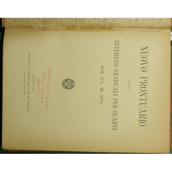 Dal 2 3/4 al 10% - in 8° - pp.184 - Tela con titolo in oro al dorso ed al piatto superiore - Abrasioni alla legatura