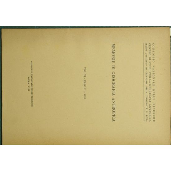 Collana Consiglio Nazionale delle ricerche. Centro di studi per la geografia antropica presso l'Istituto di geografia della Università di Roma - Vol. VI, fasc. II - 1951 - in 8° - pp.105-250 - Brossura editoriale - Illustrazioni in b/n nel testo e fuori testo